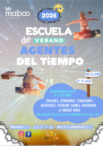 En Mr.maboo os presentamos nuestra Escuela de Verano 2026: ¡Agentes del Tiempo!, donde nuestros jóvenes aventurer@s vivirán desde el 24 de junio al 31 de julio unas semanas llenas de experiencias deportivas, educativas y lúdicas, en un ambiente dinámico, seguro y cooperativo.